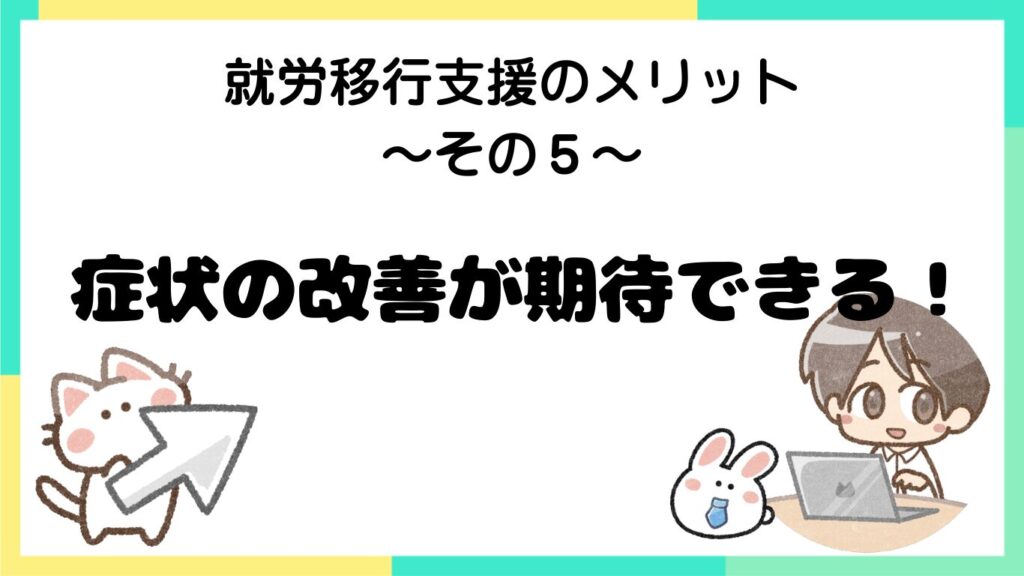 その他、就労移行支援を活用するメリットとして、以下の5つが挙げられます!