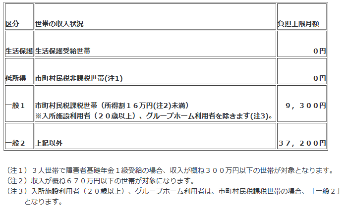 出典:障害福祉サービスにおける障害者の利用者負担 - 厚生労働省