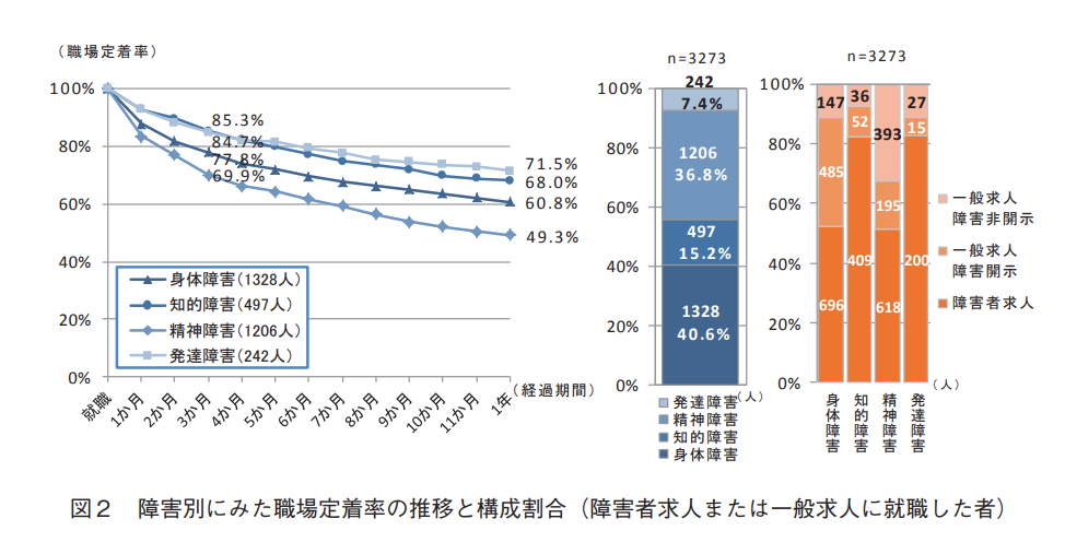 出典:障害者の就業状況等に関する調査研究 (PDF)- 独立行政法人高齢・障害求職者雇用支援機構
