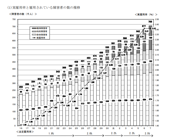 そして2026年7月には、現在の法定雇用率である2.5%から2.7%への引き上げも決まっています。
