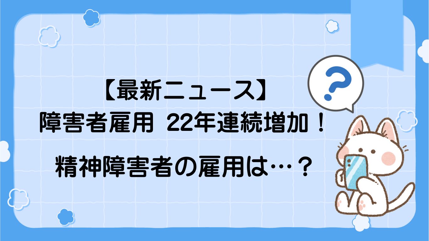 【最新ニュース】障害者雇用 22年連続増加 精神障害者にとって働きやすい環境になったのかを解説!
