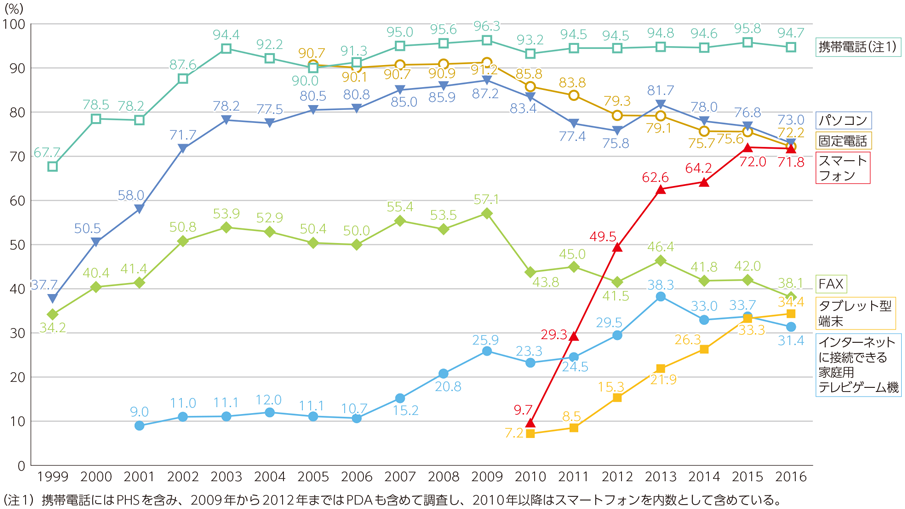 図表:日本の情報通信機器の保有状況の推移(世帯)