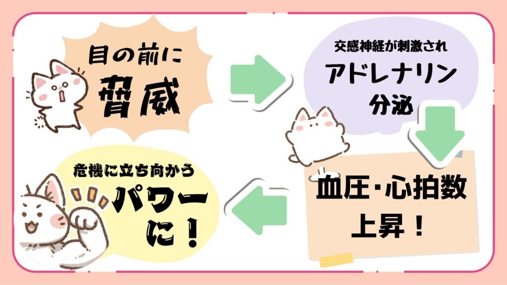 これは、目の前の脅威に対して「戦う」か「逃げる」かを瞬時に選択し、行動できる状態を作るためのものです。
