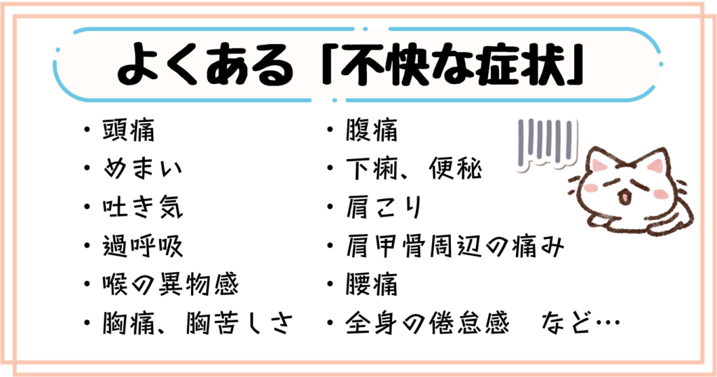 上の表で挙げた「不快な症状」はあくまで一例で、他にもさまざまな「不快な症状」を感じている方も多いのではないでしょうか?